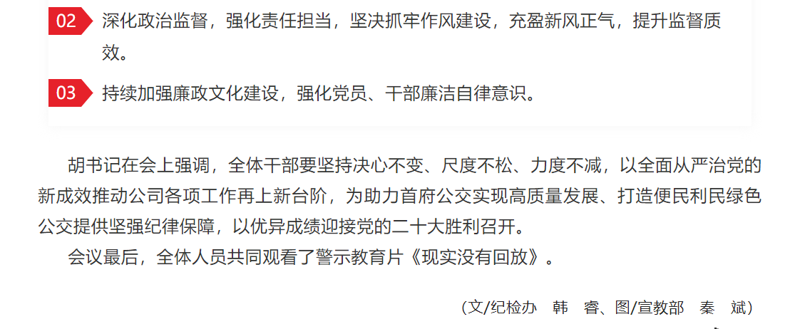 市公交公司党委召开2022年党风廉政建设和反腐败工作推进会