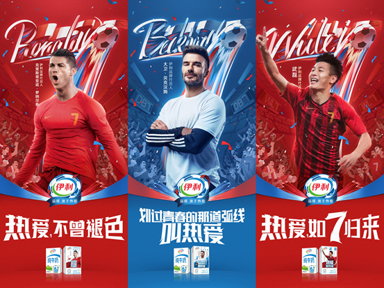 与此同时,在刚刚过去的9月15日,伊利持续加码,一次性官宣了三位足球代言人,传奇巨星贝克汉姆,当代球王C罗以及中国骄傲武磊。自此,伊利“热爱梦之队”的初代集结完毕。