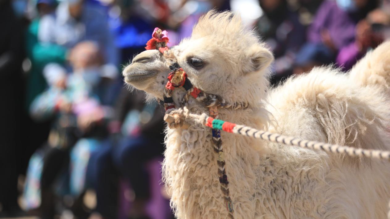 赛驼场装点一新,数千峰骆驼聚集成群,在它们当中,今年出生的驼羔萌动可爱,成为本次活动的亮点,游客们纷纷驻足拍照留影。据悉,现场超过一万名观众观看了启动仪式,4000余峰骆驼齐聚赛驼场。