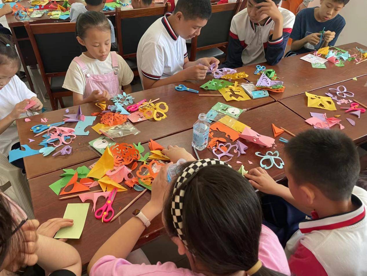 图为孩子们认真参与剪纸制作 孟熙博 供图