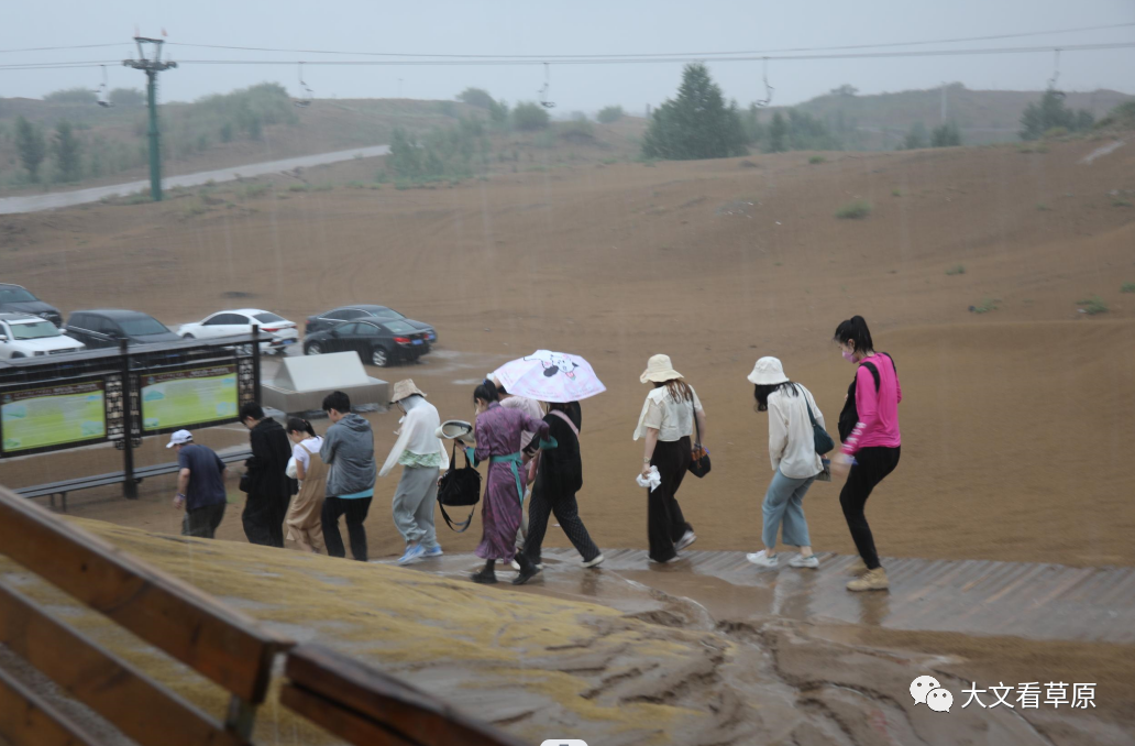 大公网内蒙古讯(记者乔辉 王月)7月20日,2023年范长江行动—香港传媒学子内蒙古行的采访团走进鄂尔多斯市银肯塔拉沙漠生态文化旅游区遇到一场前所未有的暴雨,同学们感受到自然的无情。然而“沙二代”的热情却点燃了香港同学的热情。
