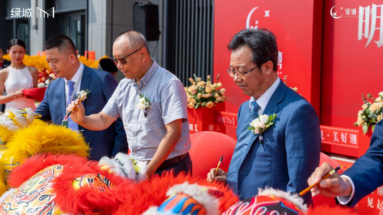 醒狮腾挪跳跃,铜铃叮咚作响,瞬间将现场氛围推向高潮,到场来宾将吉祥平安的美好祝愿传递给每一位来宾。绿城管理集团领导陈宏舟先生、伊利集团投资部领导王劭镪先生、内蒙古翰铭房地产领导王茂杰先生、绿城明月湾项目负责人章立磊先生为醒狮点睛,将祝福融于美好的生活需要仪式感,完满的活动也需要仪式感。
