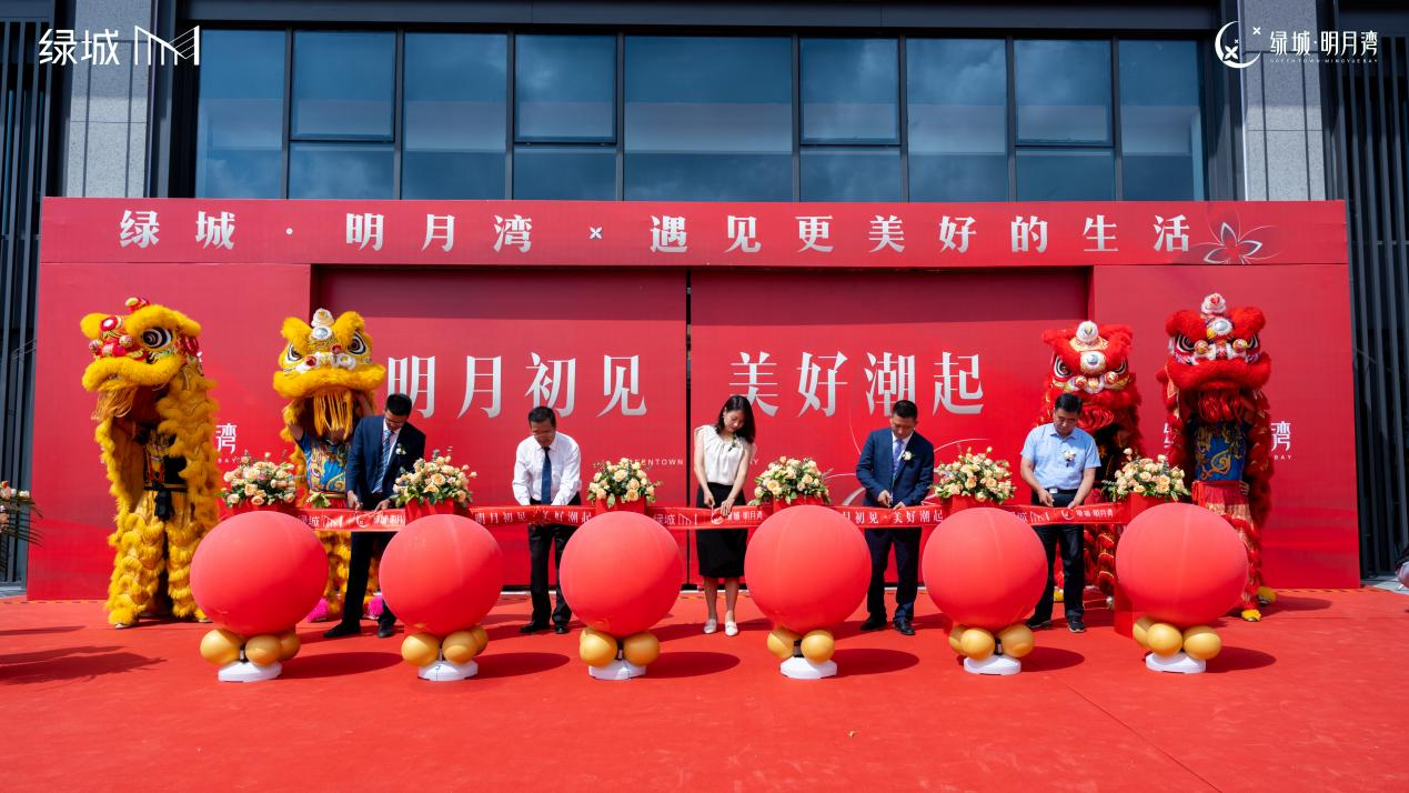 内蒙古自治区房地产业协会秘书长 张红叶女士、内蒙古翰铭房地产总经理 王茂杰先生、 项目高级顾问 李团威先生、原内蒙古军区政治部主任 付经路先生、绿城明月湾项目负责人 章立磊先生等领导为项目剪彩,随着彩带飘落,礼花升起,绿城·明月湾正式绽放伊利现代智慧健康谷!