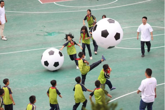 这一次“伊利营养2030”公益项目来到的贵州省榕江县,是火爆网络的贵州“村超”发源地,这里足球氛围浓厚,群众参与度很高。但受山区自然条件的限制,热爱足球的孩子们很难找到用于训练的专业足球场地。以八开镇中心校为例,孩子们只能在水泥操场上踢球。
