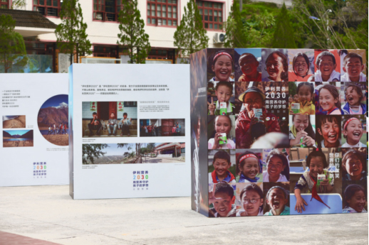 活动现场放置的“伊利营养2030”公益项目影像展,回顾了项目历程和感人瞬间