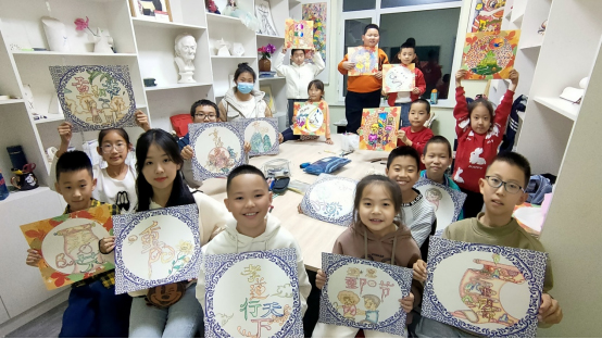 晨旭艺校小画家正在为爸爸妈妈创作重阳节绘画作品