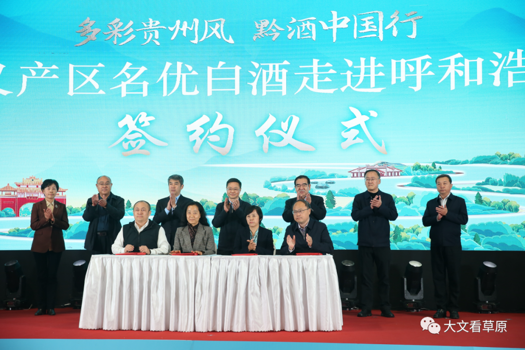 在活动签约环节,呼和浩特市文化旅游广电局和遵义市文化旅游局签约,以及黔酝酒业(北京)有限公司和内蒙古贵仁豪酒业有限公司,四家单位进行了签约,开启重要项目的合作,成为此次遵义名优白酒推介活动重要成果。