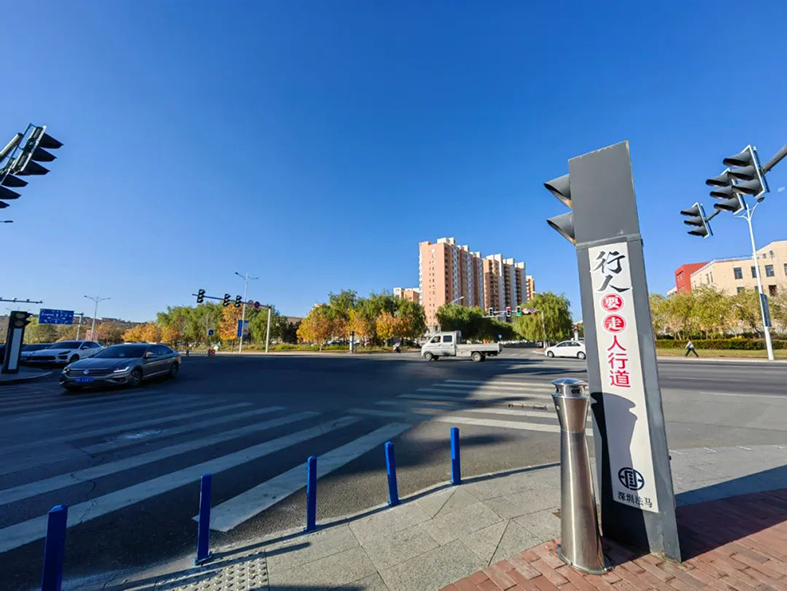 在伊金霍洛旗的十字路口、公交站牌前、人流密集场所都设置有灭烟柱,有抽烟的市民经过都会自觉将烟头放到灭烟柱的灭烟盒里。