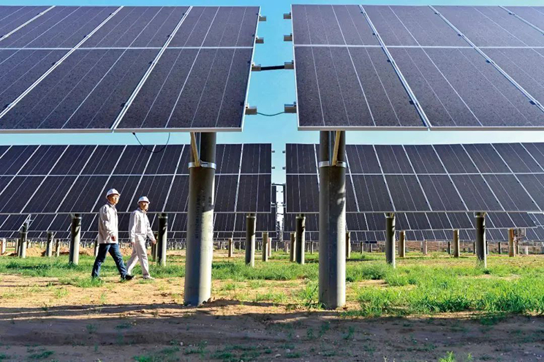 眼前这些“神奇”的光伏板,能瞬间将太阳能转化为绿电,通过电网系统输送到千家万企。该项目于2022年并网发电,年均发电约9亿千瓦时,节约标煤34.1万吨,减排二氧化碳84.1万吨。更为“神奇”的是,在光伏板的“庇护”下,阴凉处种植紫花苜蓿、蛋白桑等优质牧草,不仅绿了山头,也为后期发展养殖打下了基础。