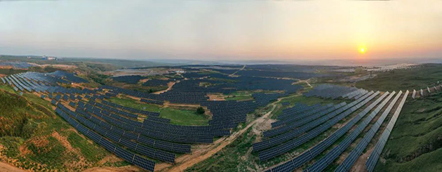 悠悠白云、蓝蓝晴空、萋萋芳草、徐徐长风,站在伊金霍洛旗天骄绿能50万千瓦采煤沉陷区生态治理光伏发电示范项目的观景台上,4.2万亩巴图塔采煤沉陷区尽收眼底,一排排深蓝色的光伏发电板在阳光的照射下熠熠生辉,蔚为壮观。