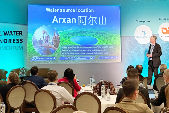 作为诞生于内蒙古的中国健康食品企业,伊利集团依托内蒙古得天独厚的自然禀赋,不仅将草原奶香和乳文化带向世界,也充分挖掘内蒙古优质水资源,向世界推介阿尔山珍稀的天然矿泉水。今年,伊利以唯一中国企业代表身份受邀出席世界饮用水大会主论坛,伊利欧洲创新中心总监Gerrit Smit博士发表了题为《满足中国消费者的新需求》的主题演讲,向全球与会嘉宾分享了中国饮用水市场的发展情况,重点推介阿尔山水资源,展现伊利对健康食品产业的积极布局,以及在饮用水领域的创新成果和最新进展。