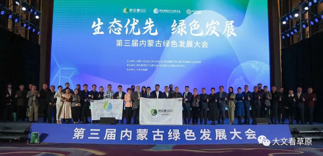 内蒙古自治区人民政府副主席、党组成员代钦,内蒙古自治区政协副主席、自治区工商业联合会第十三届主席、自治区总商会会长安润生,阿拉善盟盟长白海林,阿拉善SEE荒漠化防治委员会主席兼内蒙古项目中心主席常付田、中关村智酷董事长赵强及内蒙古本地知名企业家等近300人出席了大会。本次大会由内蒙古自治区工商业联合会指导,阿拉善盟行政公署、阿拉善SEE生态协会联合主办,中关村智酷协办。本次会议政府、社会、企业多方参与,会议期间,与会人员共同交流探讨了绿色低碳、新能源发展、生态环境建设、荒漠化防治等重大课题,为促进内蒙古经济高质量发展献计献策。