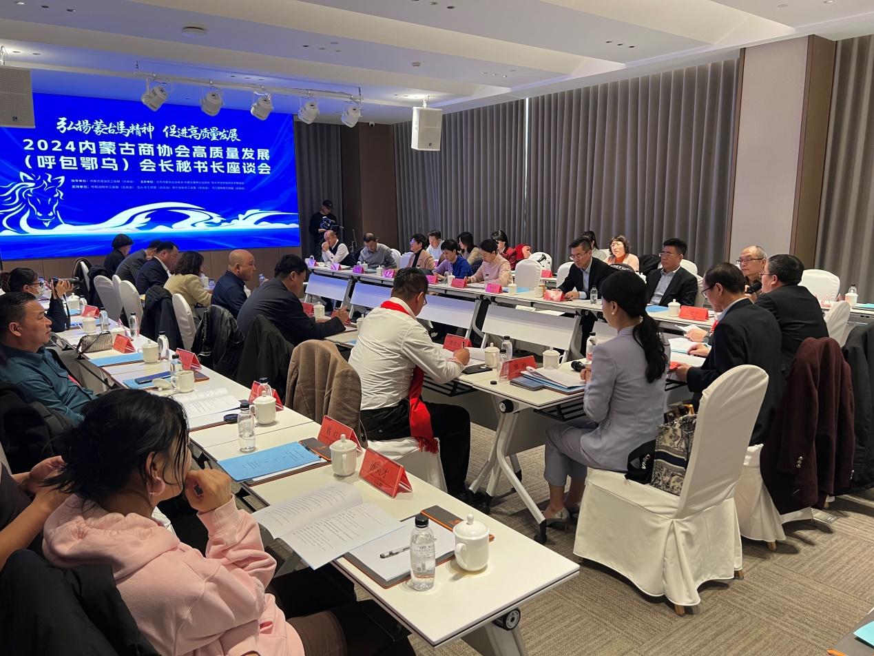 座谈会以“弘扬蒙古马精神促进高质量发展”为主题,由内蒙古自治区工商联(总商会)指导,呼和浩特市工商联(总商会)、包头市工商联(总商会)、鄂尔多斯市工商联(总商会)、乌兰察布市工商联(总商会)支持,北京内蒙古企业商会、内蒙古蒙商公益协会、包头市党外知识分子联谊会联合主办;内蒙古鄂尔多斯商会、内蒙古乌兰察布商会、内蒙古移动电子商务协会、内蒙古物流与采购联合会、内蒙古餐饮烹饪饭店行业协会、内蒙古口岸经济贸易联合会、蓝洋林顿大酒店等单位联合承办。