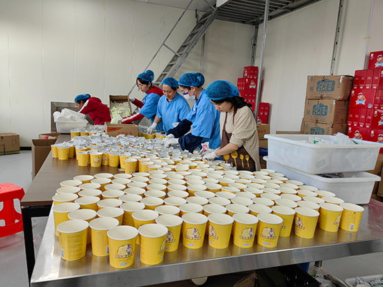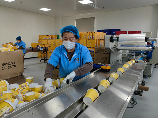 隆冬时节,在阿腾席热镇掌岗图村优品“阿努”奶茶生产研发基地,几十名工人正在生产线上忙碌着,一杯杯奶茶塑膜,封装,准备发货。