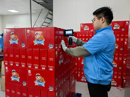 据悉,掌岗图优品“阿努”奶茶,每天生产4000到5000件,临近春节一个月订单就达到70万件,供不应求。