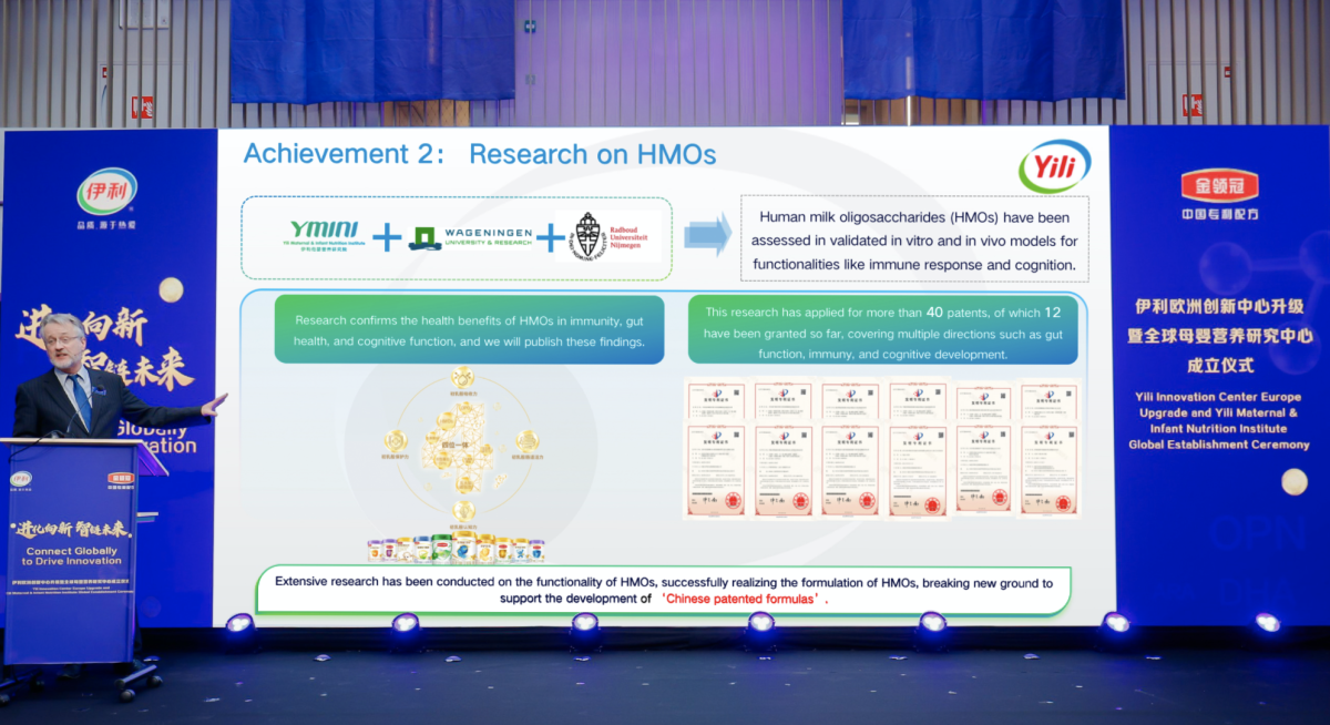 在母乳研究领域,伊利欧洲创新中心携手荷兰瓦赫宁根大学、英国剑桥大学、荷兰唐德斯脑认知与行为研究院、荷兰乳业研究院开展母乳及核心成分研究,并对母乳蛋白质、母乳低聚糖(HMOs)、益生菌等有益成分进行功效验证,让婴幼儿配方奶粉更好地满足婴儿的营养需求。其中HMOs领域的研究已获得12项授权专利,为开发 “中国专利配方”提供了有力支撑,并已应用于金领冠婴幼儿配方奶粉系列产品。