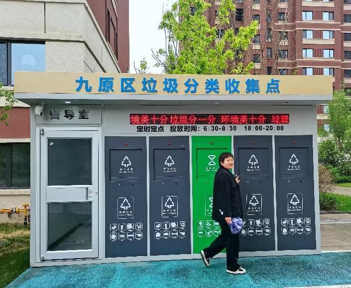 九原区建有垃圾再生资源绿色分拣中心,据介绍到5月底便可进行运营,设备机器都是随时拆解组装完毕,垃圾分类后进行降解处理利用。这便形成了垃圾分类收集、运输、处理等环节的具体实施情况。