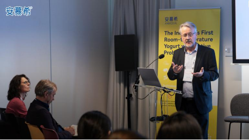 作为中国益生菌商业化应用的佼佼者,国民酸奶品牌安慕希受邀参加此次大会。安慕希常温活性益生菌酸奶,更是凭借在应用领域实现颠覆式创新成为本次大会的官方指定酸奶慕希常温活性益生菌酸奶在全球范围首次突破“益生菌在常温酸奶中失活”的技术壁垒,在大会上受到众多益生菌领域专家的关注和赞许。肠道微生态领域学术专家Erwin Gerard Zoetendal博士和Novonesis专家Lars Bredmose先生等多名学者,还在峰会研讨会环节针对安慕希在应用层面的突破进行了探讨,并认为该技术突破在未来应用前景广阔。