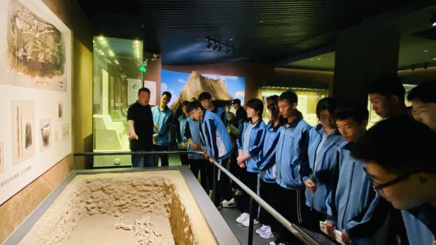 参观展览过程中,汪英华研究员结合他在考古工作中的经历,从大窑遗址的发发掘与研究再到采集石料、预制石核、打制石片和加工石器等几个方面,为学生们详细介绍了大窑遗址的面貌和北方石器制作工艺发展的重要意义。