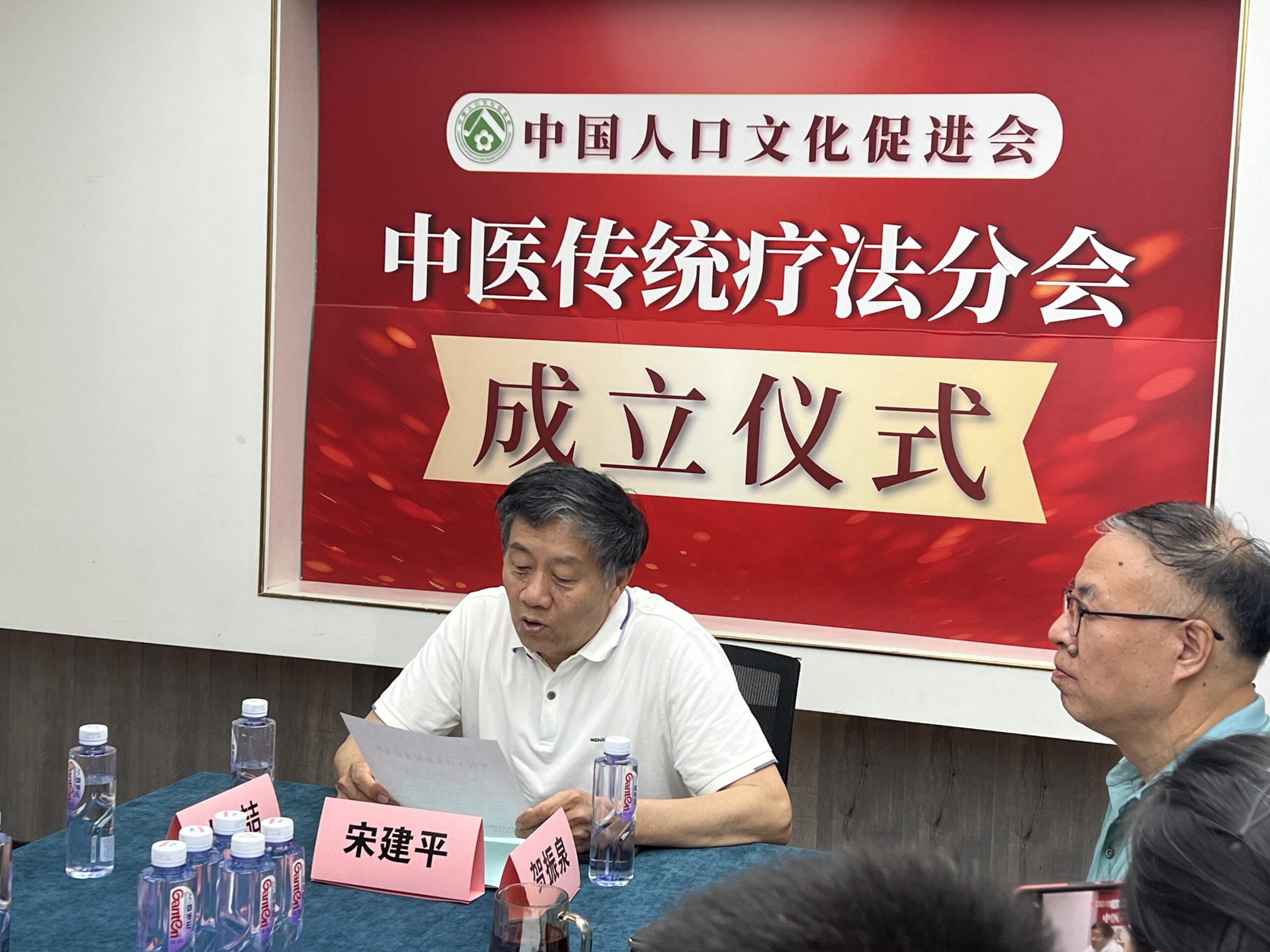 成立仪式上,中国人口文化促进会党支部书记、秘书长宋建平宣读了《关于同意成立中国人口文化促进会中医传法分会的批复》,并发表了热情洋溢的致辞。他高度肯定了分会成立的重大意义,并感谢御骨非物质文化遗产保护(北京)有限公司发挥了牵头作用。他强调了中医传统疗法在维护人口健康、促进文化繁荣方面的重要作用,并希望分会能够发挥桥梁纽带作用,推动中医传统疗法与现代医学的融合发展。
