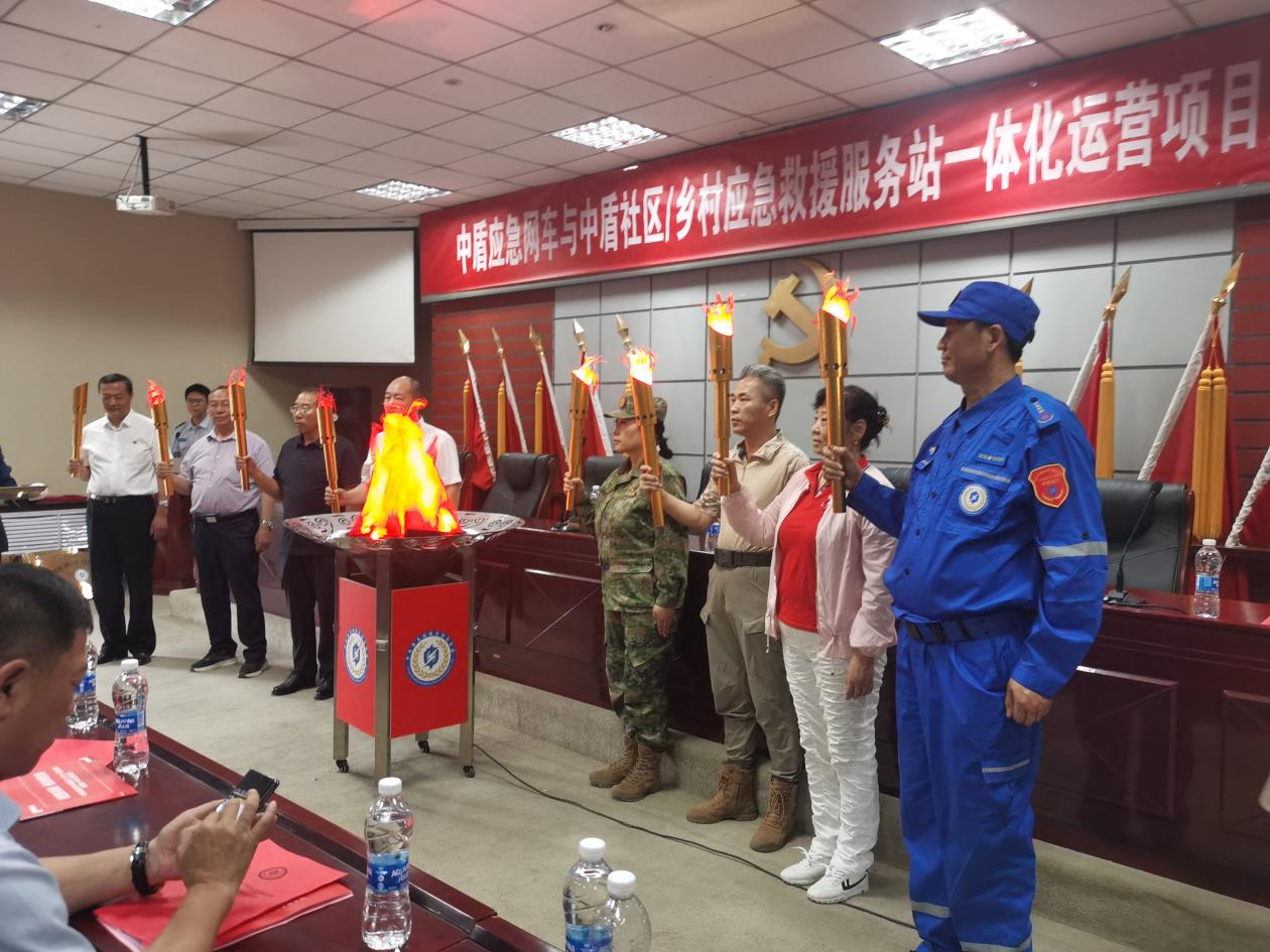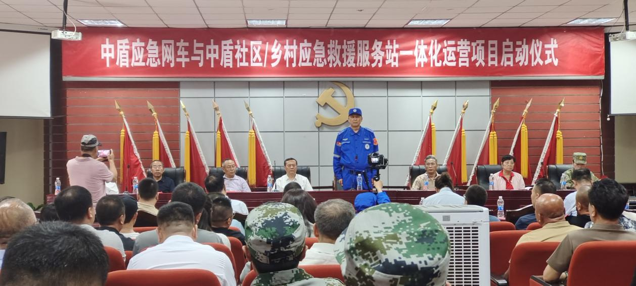 2024年6月30 日下午,内蒙古经贸外语学院(原炮团训练基地)多功能厅,在内蒙古退役军人事务厅、呼和浩特退队军人事务局等部门领导及现场150余位嘉宾的见证下,中盾应急救援集团内蒙古公司“中盾应急网车与中盾社区/乡村应急救援服务站一体化运营项目”顺利揭牌启动。