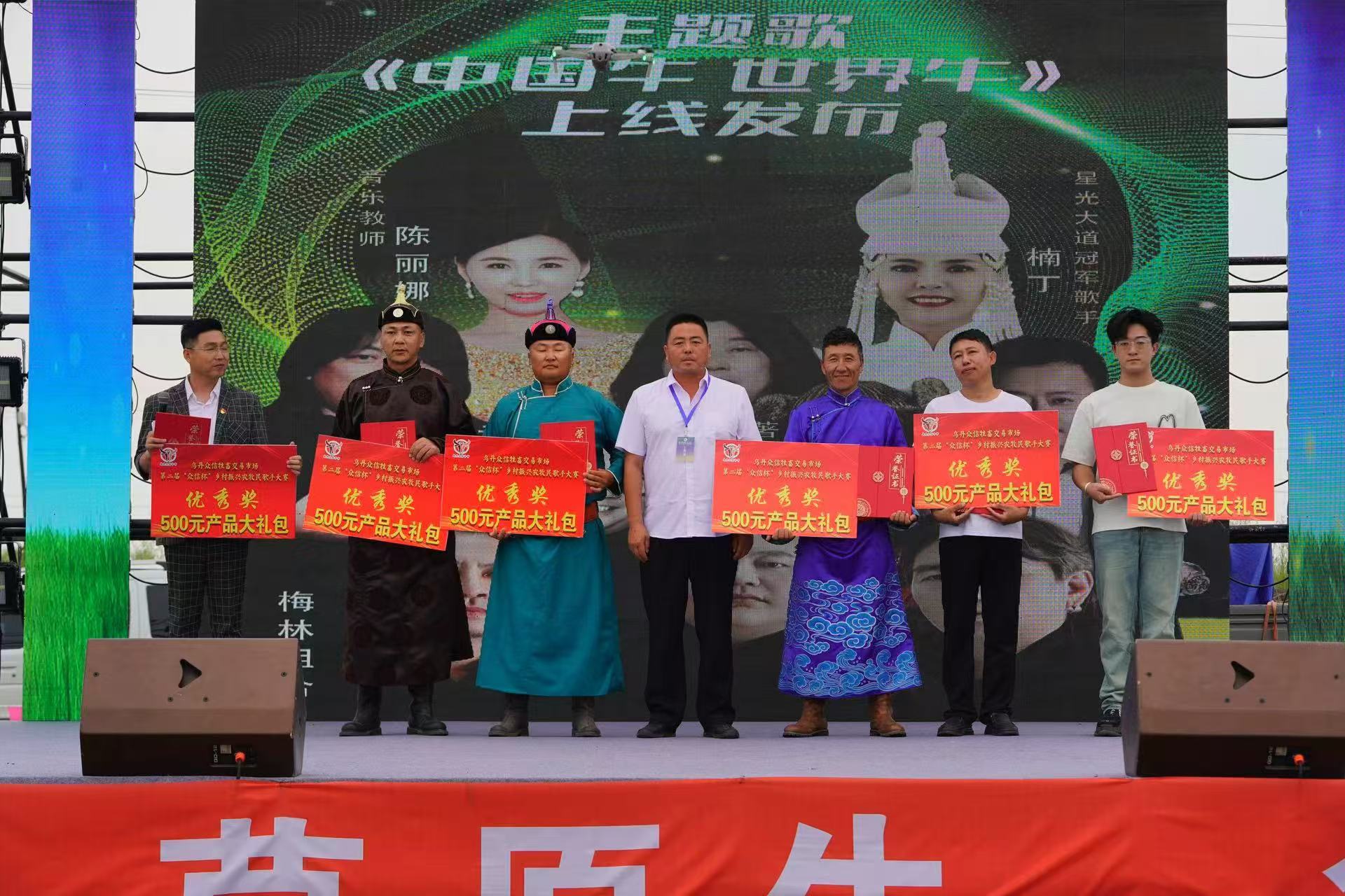 29下午同时举行了“众杯”农牧乡村振兴手大赛预赛,来自不同旗县区的28位选手各显神通,激烈角逐,最后选出14位选手晋级晚上的决赛。夜幕降临,乌丹众信活畜交易市场迎来了一场视听盛宴——“众信杯”乡村振兴农牧民歌手大赛暨公益演唱会。晚会由翁牛特旗领导及赤峰农牧局领导致辞拉开序幕,随后,来自巴林右旗歌舞团的开场舞、歌手陈丽娜、柴野、梅林组合、豪图等深情献唱,节目轮番上阵,赢得了现场观众的阵阵掌声。晚会还特别发布了赤峰“牛人大赛”主题歌《中国牛 世界牛》,并由楠丁、柴野联袂演唱,将现场气氛推向了高潮。