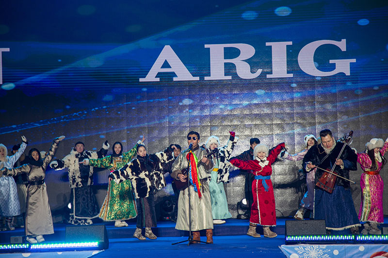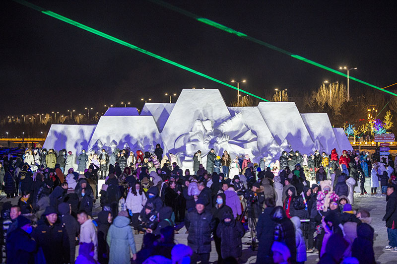 银装素裹的锡林湖上,独具草原风情的大型冰雕雪雕璀 璨夺目,瞬间成为冬日里的焦点,引领市民和游客踏入锡林 浩特的冰雪童话王国。精彩纷呈的冰火非遗秀(火壶表演与 呼麦)激情上演,万人蹦迪的热烈氛围与潇洒飘逸的交谊舞 相互交织,让冬日的草原明珠焕发出无尽的活力。特色草原 美食令人垂涎欲滴,专业旅拍定格冰雪浪漫瞬间,妙趣横生 的冰雪互动节目更是让市民和游客乐在其中,共同领略草原 冰雪季的独特魅力与火热激情。此外,现场还设置了抽奖环 节,幸运观众赢得了寓意吉祥的新年福袋,为新的一年开启 了多喜乐、长安宁的美好序幕。