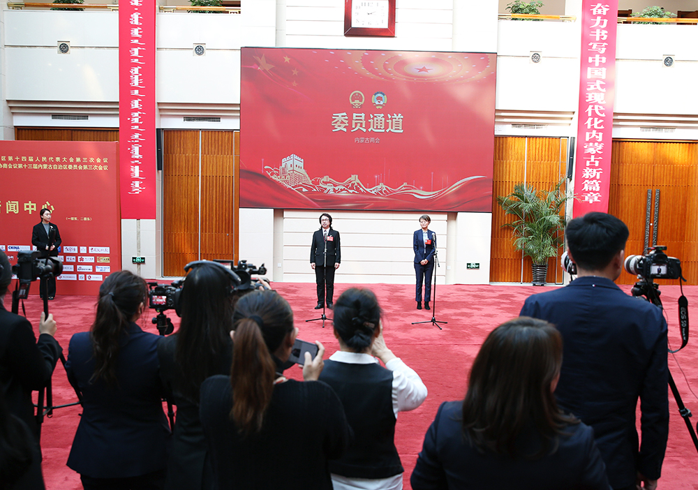 1月14日下午,内蒙古自治区两会第二场“委员通道”现场。 新华网 杨腾格尔 摄