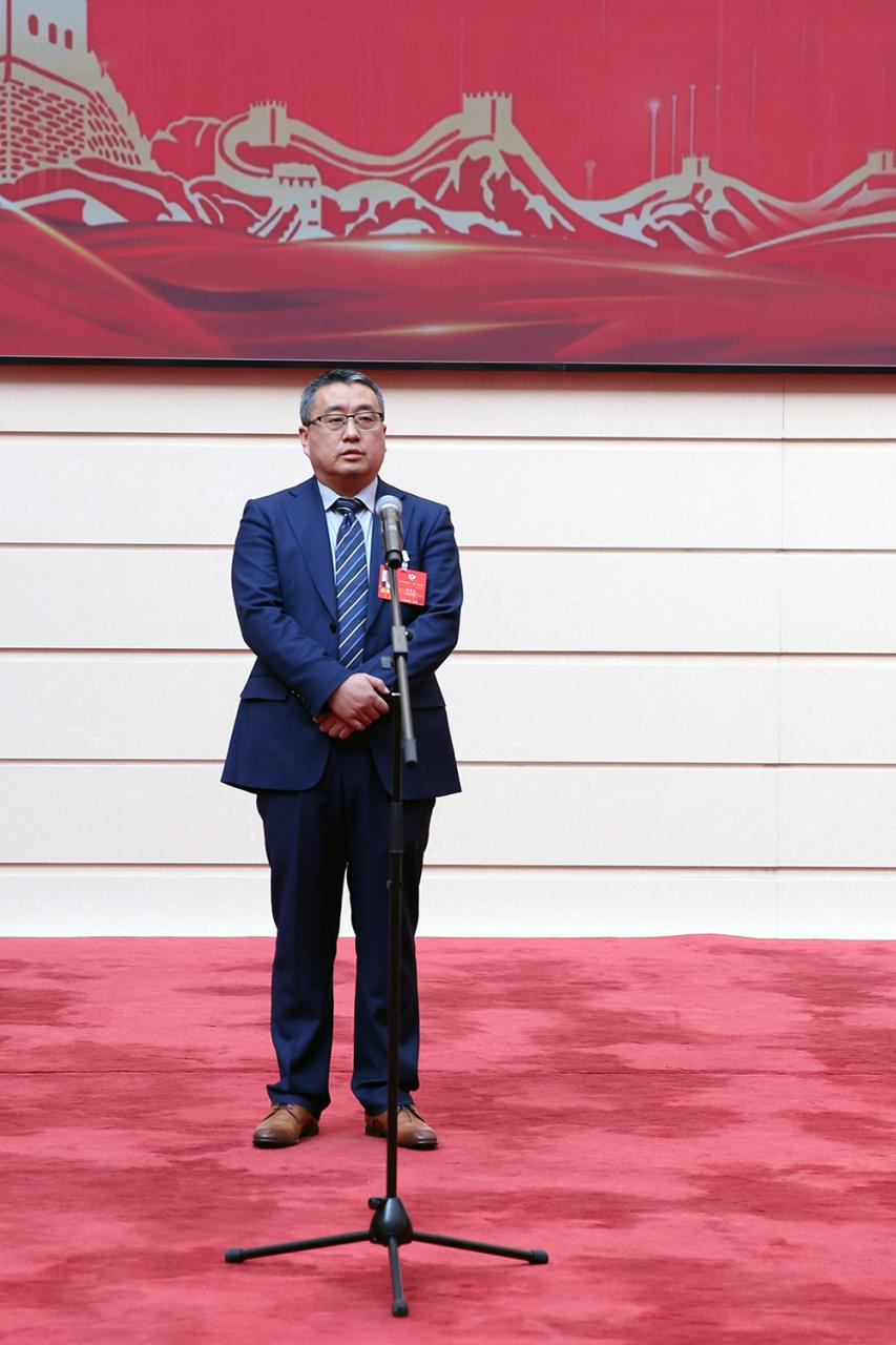 自治区政协委员、赤峰东荣羊绒发展(集团)有限公司总经理程晓虎在内蒙古自治区两会第二场“委员通道”现场。新华网 杨腾格尔 摄