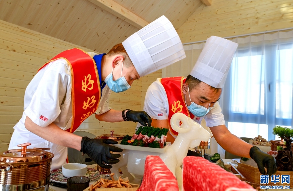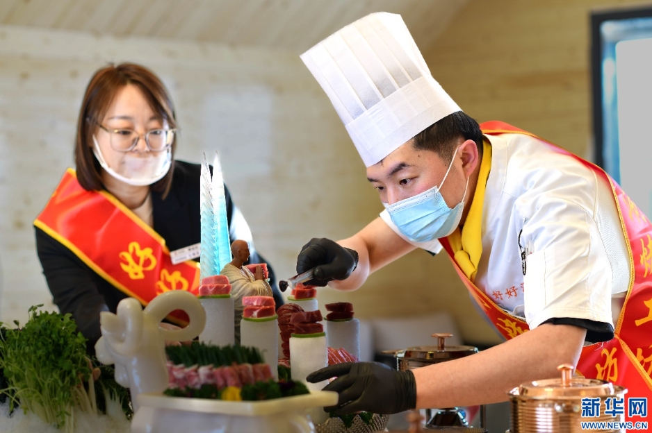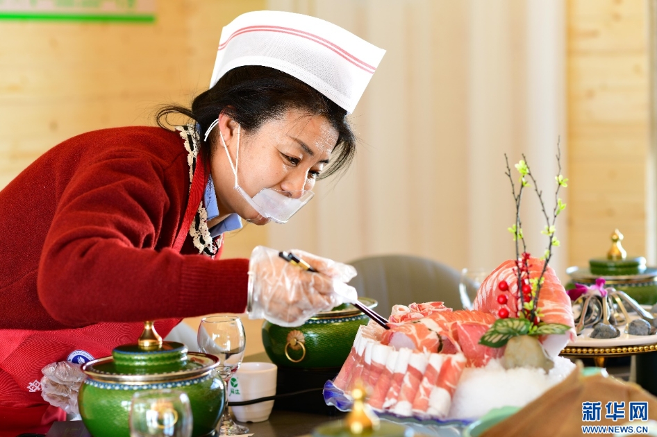 1月19日,参赛选手在内蒙古首届草原涮肉节风味涮肉宴大赛比赛中。新华网发(王正 摄)