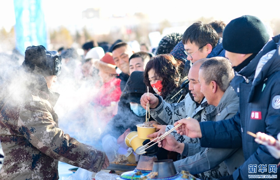 1月19日,游客在内蒙古首届草原涮肉节上品尝涮肉。新华网发(王正 摄)