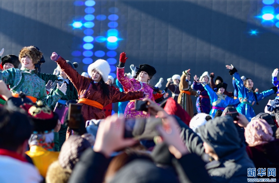 1月19日,演员在内蒙古首届草原涮肉节上进行文艺表演。新华网发(王正 摄)