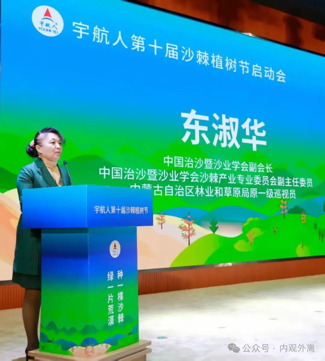 东淑华在致辞中指出:沙棘的价值不仅体现在生态方面,其经济价值和营养价值、药用价值也非常高。沙棘产业是一个功在当代,利在千秋的伟大产业。宇航人第十届沙棘植树节的正式启动,标志着宇航人公司对生态环保事业的坚定承诺。在沙棘产业发展的道路上,宇航人步履不停,每一棵种下的沙棘树,都是对绿色未来的深情期许,更是为地球生态环境筑起的一道坚固防线。