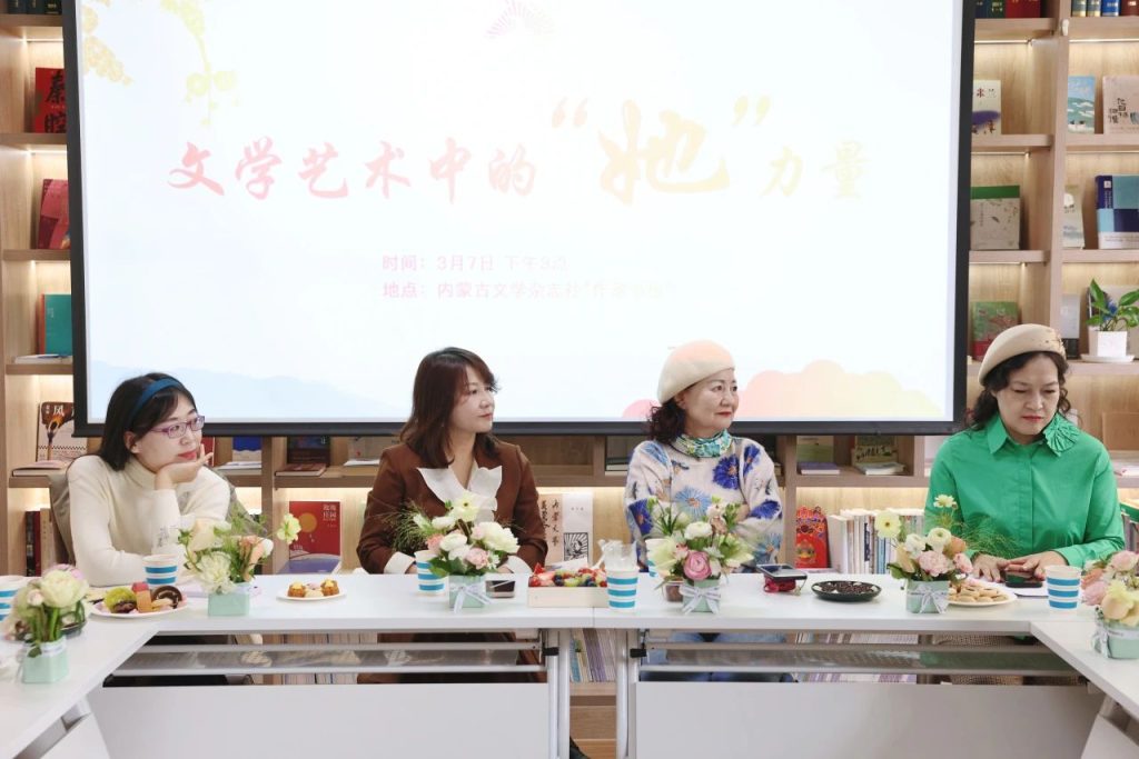 3月7日下午,在第115个国际妇女节到来之际,以“文学艺术中的‘她’力量”为主题的女性会话活动在内蒙古文学杂志社“作家书房”举办。杜梅、乌琼芳、贾翠霞、蒋雨含、薛晓燕、刘金梅、乌日娜、张海晶、黑梅、牛笛、闫瑛娟等20余位作家、诗人、画家、大学教授、媒体人及朗诵爱好者,共同展开了一场聚焦文学艺术作品中女性力量主题的深度对谈。