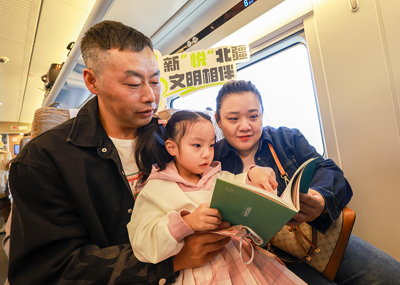 从包头开往北京的G2492列车以300公里的时速飞驰,与“快速”相对的是来自呼和浩特新城区的“文化使者”与旅客们在列车上阅读分享的“慢体验”。