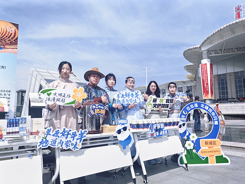 在五一小长假与刘若英“飞行日”演唱会双重流量加持下,呼和浩特市新城区创新文旅宣传模式,新城区委宣传部联动多部门打造“奶茶驿站”主题文明实践场景。志愿者化身“文化推荐官”,以咸奶茶为载体,向旅客讲述“中国乳都”的草原故事。同步赠送各类特色文创产品及演唱会主题明信片,实现“一杯奶茶暖行程,一首经典识青城”的沉浸式体验,将城市文旅资源巧妙串联。