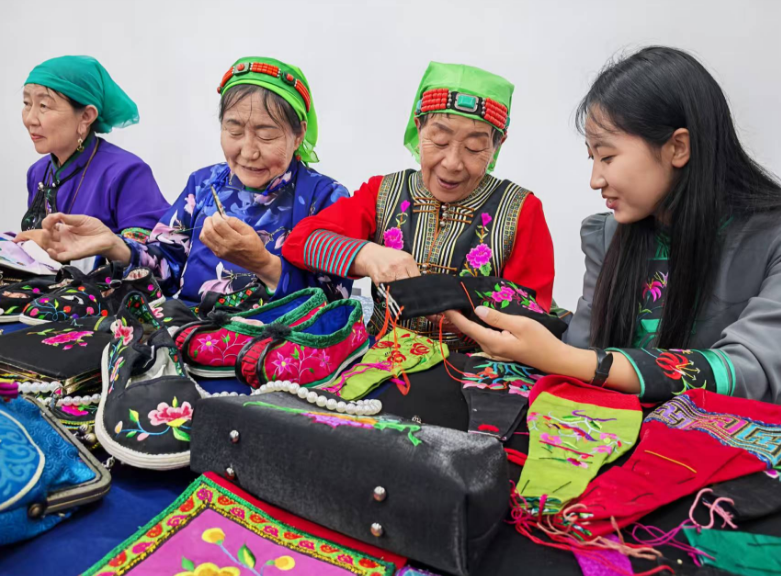 在萨日郎巾帼民族手工艺品专业合作社,绣娘们飞针走线,将草原花卉、野生动物等元素融入作品。这个由共产党员秀云于 2016 年创办的合作社,已带动 87 名成员就业,年均销售收入超 80 万元。通过免费培训、订单合作等方式,合作社累计培训 3667 人,其中贫困户 300 余人,实现 “输血式” 扶贫向 “造血式” 扶贫转变。