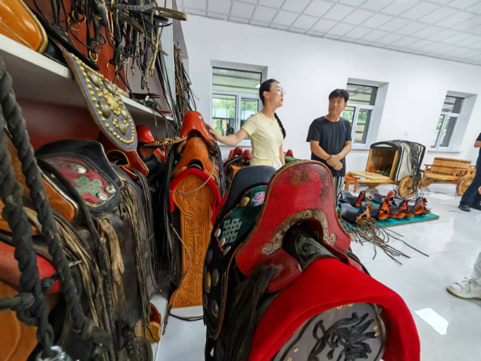 不远处的敖力斯台民族手工艺品加工有限公司,传承人阿拉坦巴根正带领工匠制作传统马鞍。作为兴安盟非物质文化遗产项目代表性传承人,他将札萨克图马鞍工艺发扬光大,公司年创收 30 余万元,直接帮助 9 名脱贫人口就业,人均年增收 1.2 万元。2023 年新建的加工车间和展示厅,更让这门传统技艺焕发新生。
