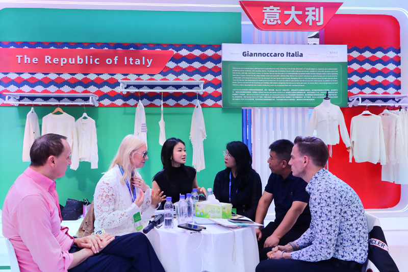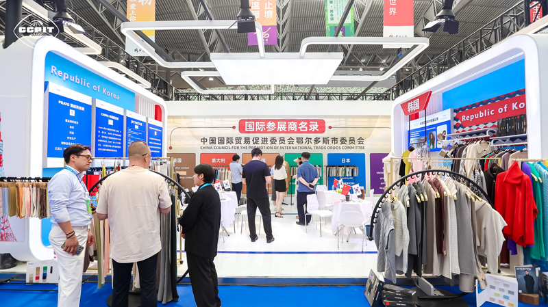 市贸促会依托其全球资源网络,邀约法国、意大利、英国、韩国、日本、蒙古国等6国时尚与羊绒产业的30余家知名企业参展,呈现近500平方米的国际精品展区。国际馆内各国特色鲜明:日本展区聚焦精密制造,展示超细纺纱、抗皱精纺羊绒及精美丝巾;韩国展区主打功能性材料创新,呈现创新面料和纱线;意大利展区以前沿设计与环保技术引领潮流;蒙古展区突出核心原料与精深加工,展示优质原绒、再生绒技术及高端成衣。还邀请到日本、意大利、法国5位知名设计师参加相关活动。国际馆特设贸促会服务台,为本土企业“扬帆出海”提供专业高效的涉外商事法律服务,彰显其权威服务职能。
