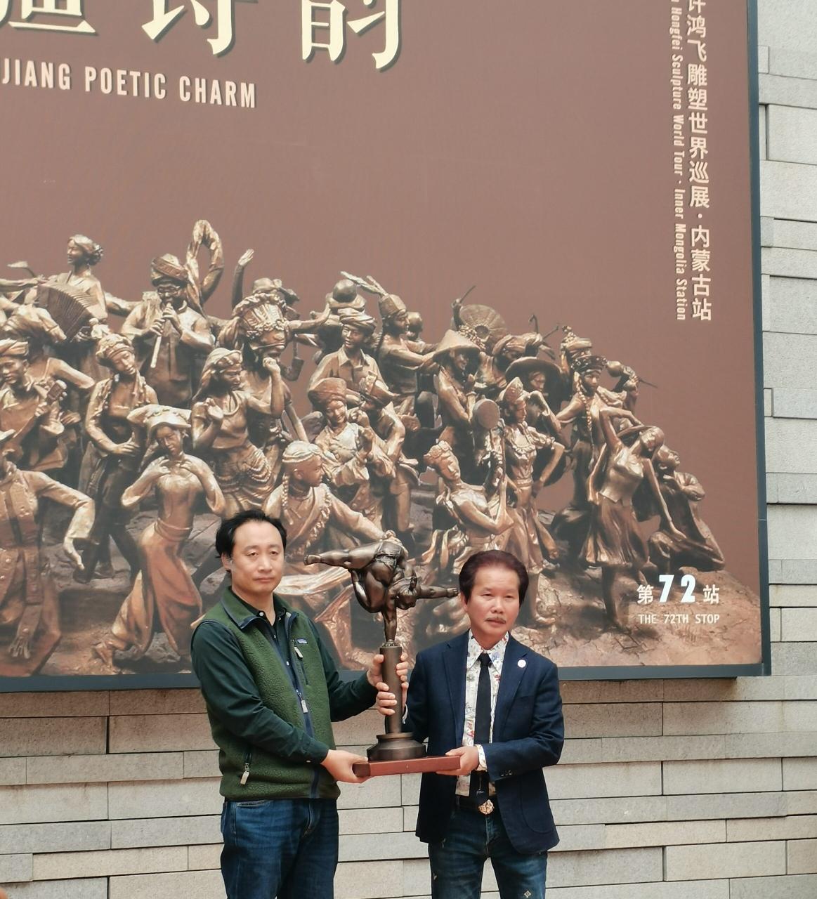 据悉此次展览到11.19日,许鸿飞向内蒙古美术馆捐赠其雕塑作品。许鸿飞讲述每一次展览的雕塑都是不一样的,有的甚至是直接为展览集中制作一批相关主题的雕塑作品。此次展览在内蒙古美术馆咖啡厅隆重举行开幕式暨许鸿飞雕塑艺术座谈会,社会各界人士,知名艺术家爱好者,游客等参加莅临。
