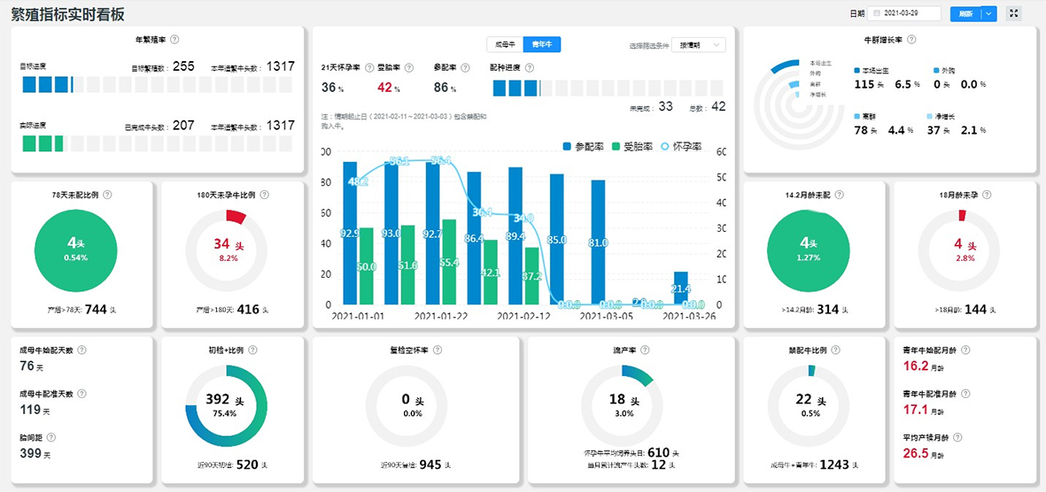 为更好的呈现奶牛养殖大数据分析进程及结果与应用,“伊利智慧牧场大数据分析应用平台3.0”构建了全过程直观、醒目的视窗面板,配备自动预警提示,对提升、异常、改善事件及时自动预警。同时,相关信息与手机APP连通,无论何时何地,均可随时掌握牧场的全部信息,指导牧场及时做出科学决策,让牧场经营管理更精准、更便捷。同时,系统内实时更新地域内养殖水平、全国行业水平、国际先进水平相关数据,并与牧场各项养殖及经营指标形成动态对比分析,让牧场随时掌握分析结果及配套方案,指导牧场的长期规划与发展方向。