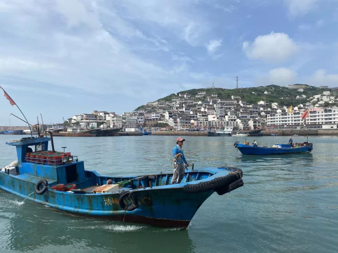 50分钟的行程,海水从澄黄色变得湛蓝,嵊山岛就在眼前了。码头上“百年渔场”四个大字提醒着人们,这里曾经的辉煌。因为是休渔期,作业的渔船停泊在港湾,一些小渔船在附近海钓,远处依山而建的民房层层叠叠,仿佛海上布达拉宫一般,孤悬海上的嵊山岛美不胜收,散发着独特的海洋文化气息。