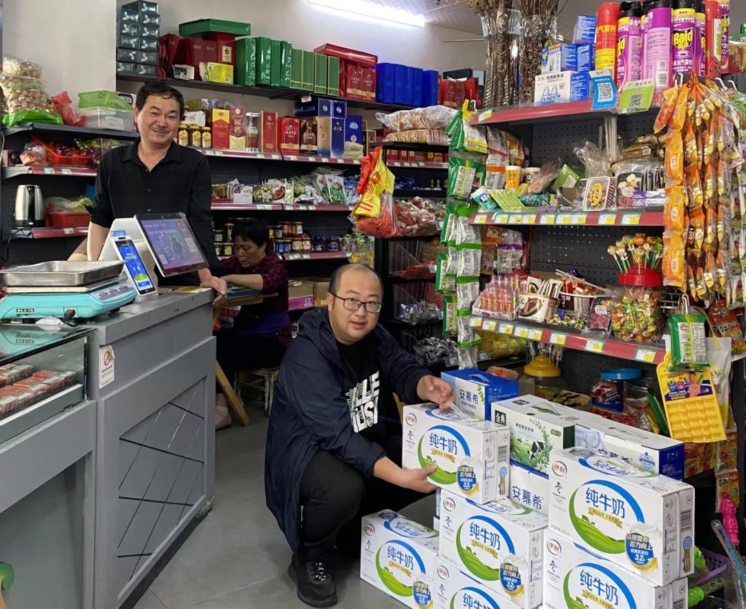 跟老人家用方言聊聊家常,帮老人家理理货架上的商品,十几分钟的拜访过程,更像晚辈回家探亲。虽然销售量不多,但金建兵总能保证,摆在货架上的那一两提牛奶都是新鲜的。