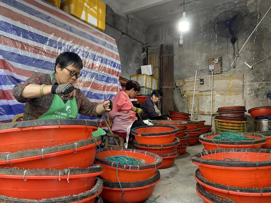 补渔网的渔民