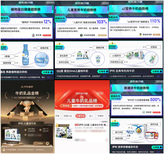 京东平台,伊利牛奶京东自营旗舰店获得热销店铺榜TOP1。其中,QQ星“星品之夜”,综艺晚会斩获收视榜第一名,QQ星DHA产品荣获单品、品类销售双料冠军;同时,伊利在京东保持平台高价值用户长线运营,会员储值卡销售斩获食品品类TOP 1。在双11品牌会员日,会员GMV贡献、会员ARPU创店铺历史新高,成交金额同比提升817%。