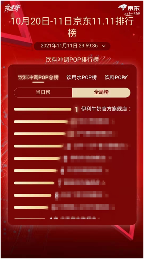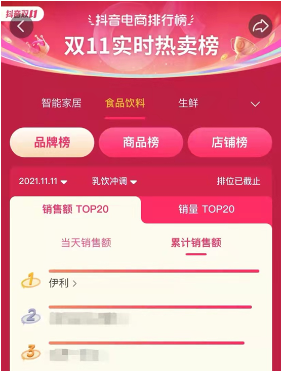 伊利斩获“双11”全网乳品多项第一名