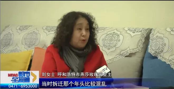刘女士 呼和浩特市燕莎玫瑰园小区业主:当时拆迁那个年头比较混乱,完了之后就跟我们说,你要多大的,多少钱就这种的,谁家和谁家也不一样,有的是两万多元拿下来的,有的十来万元拿的,这个价钱是不等,自己跟(开发商)去谈,我们家是八万块钱拿下来的。